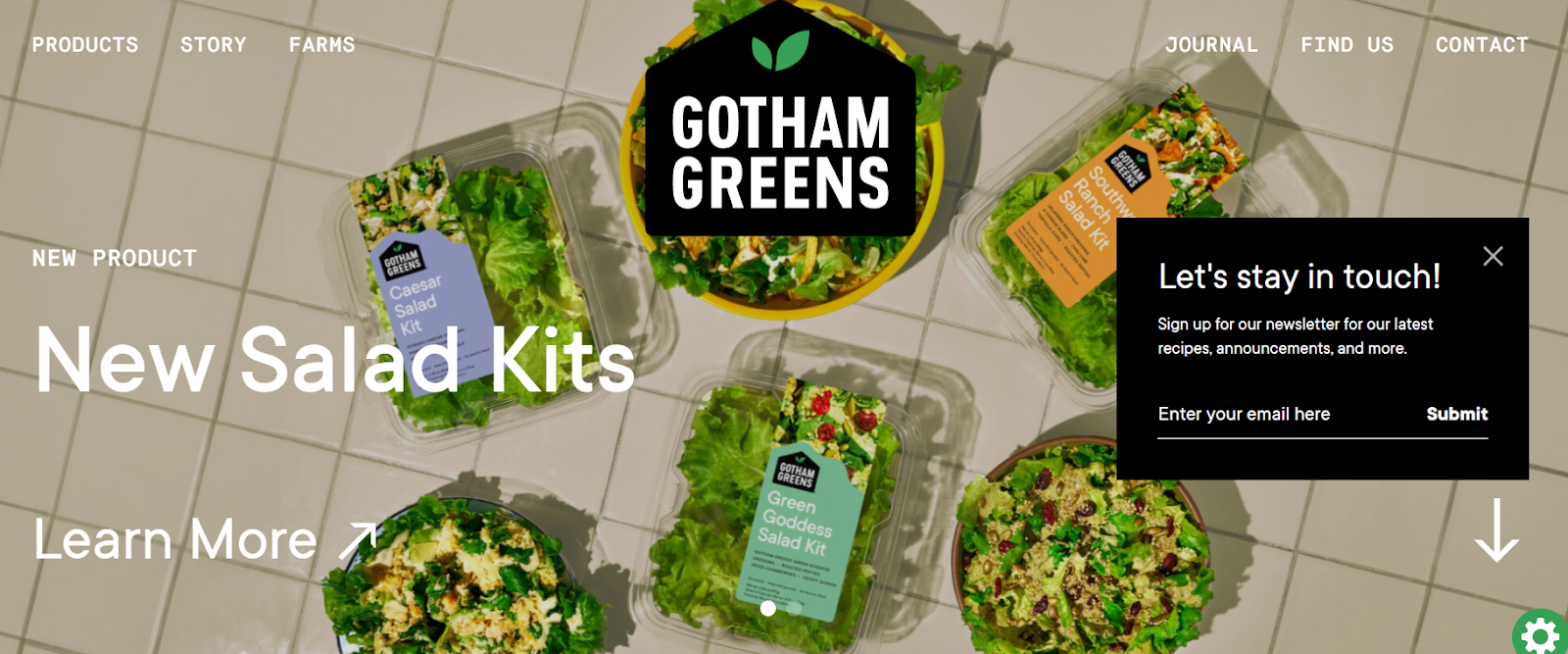 Gotham Greens has a one-page design that is both fresh and modern. The simple layout makes it easy for visitors to learn about the business without having to click through many pages.